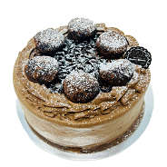 チョコレート味の生クリームとココアのスポンジを重ね、「生クリームトリュフ」と削ったチョコレートを飾りました